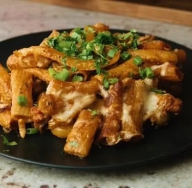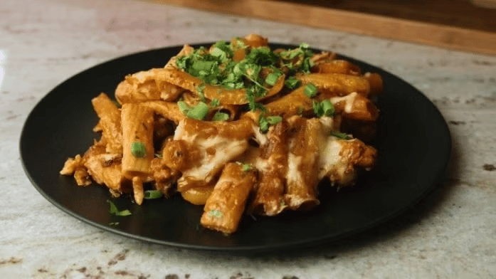 Dieses Gericht ist ein wahres Geschmackserlebnis: Saftiges Hähnchenfleisch mit weichgemachten Paprikaschoten und Zwiebeln. Und all das in einer cremigen, aber würzigen Salsasauce – gekrönt von reichlich geschmolzenem Käse.